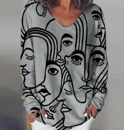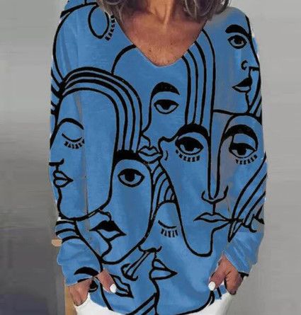 Material: Cotton/Polyester Origin: CN(Origin) Clothing Length: Regular Collar: V-Neck Gender: WOMEN Decoration: Apstrakt paint Sleeve Length(cm): Full Sleeve Style: Regular Style: Casual Fabric Type: Broadcloth Pattern Type: Print Item Type: Ladies Tops,Vestidos Elegantes Feature: Fashion Blusas,Soft,Sexy Blouse Style: Streetwear,Work Wear Blouse,Feminino